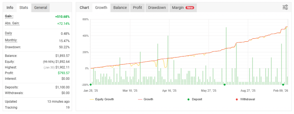 The EA includes a built-in stabilization algorithm designed to maintain consistent performance across different market conditions. Markets constantly change, and this adaptive behavior helps the robot remain effective in both trending and ranging environments.