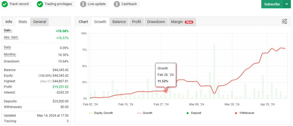 - Flexible risk profiles: With 9 strategy levels and adjustable drawdown protection, you can choose how aggressive or conservative you want to be.